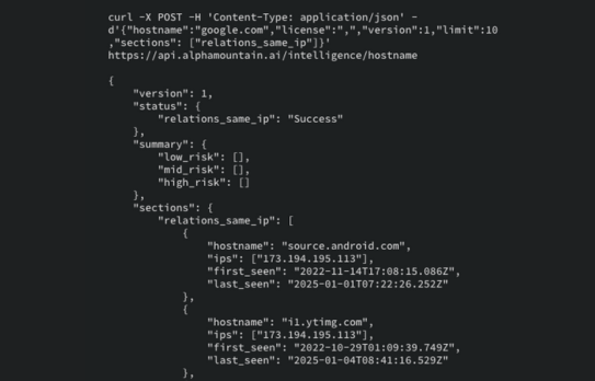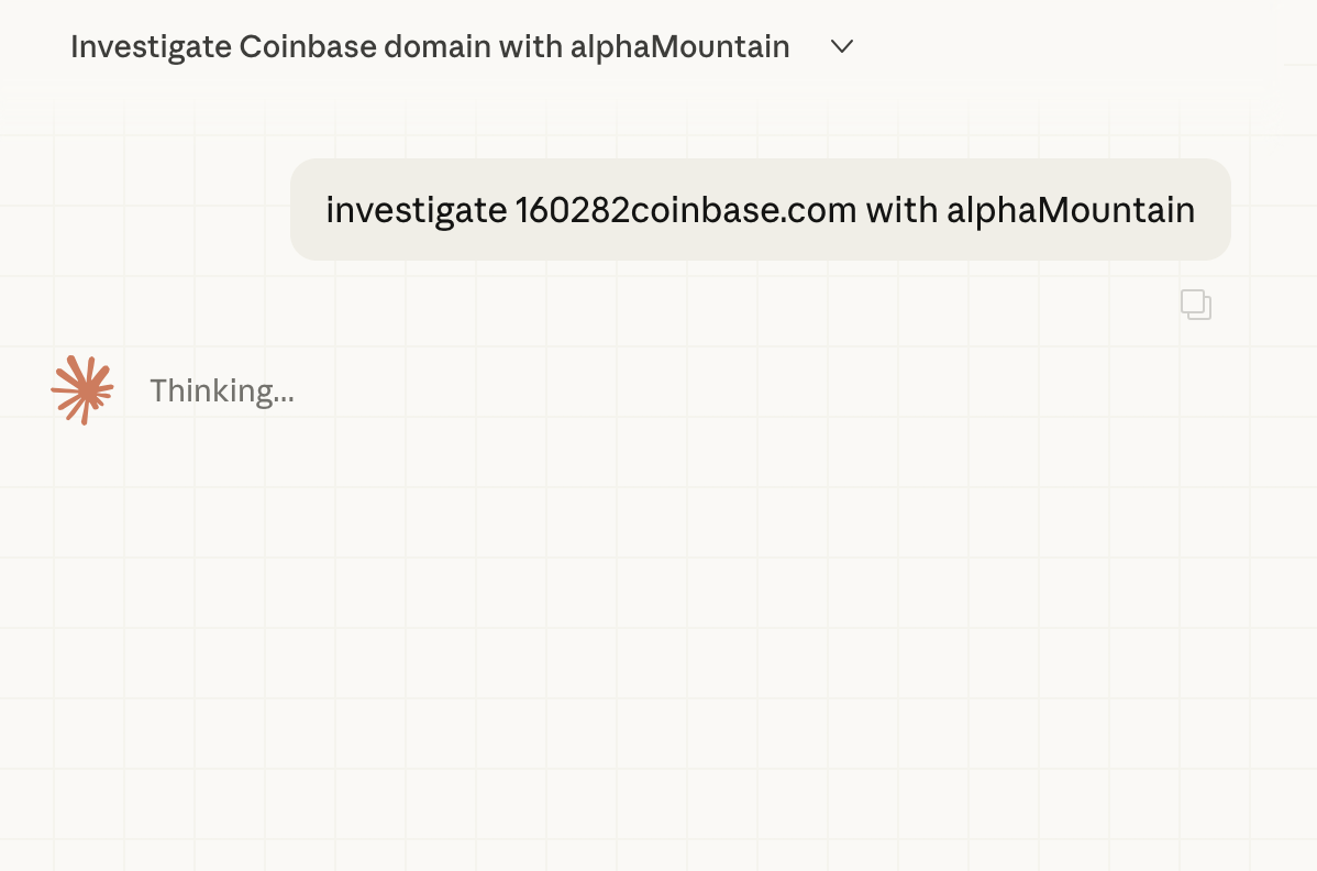 Point your AI agent to the official alphaMountain MCP server for effortless integration. You’ll get the responses you need for domain classification, IP reputation and comprehensive threat intelligence.