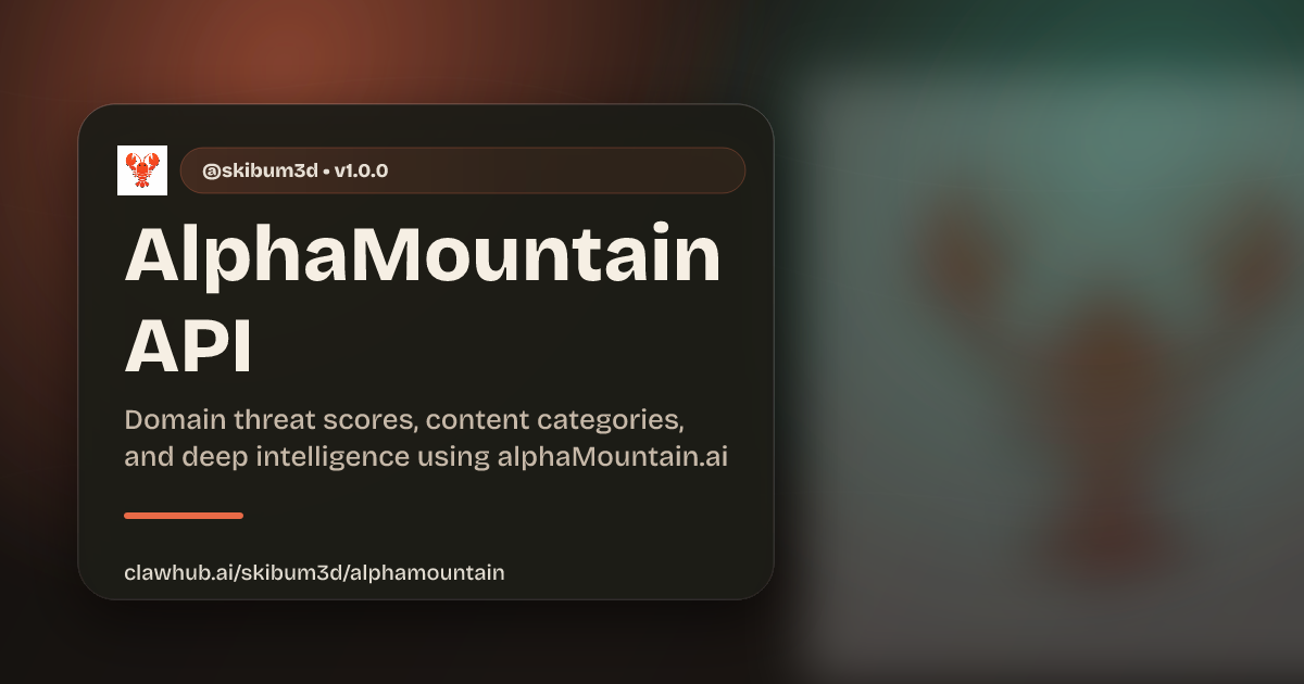 Integrate alphaMountain’s domain & IP threat intelligence with the official OpenClaw skill. Review the manifest, then download the skill for OpenClaw on your local environment. Everything you need to investigate hosts is included in the skill.