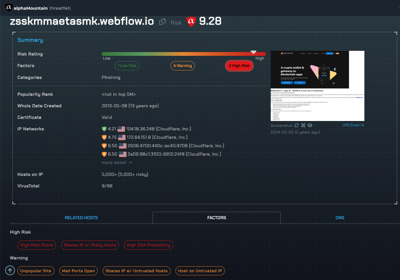 alphaMountain classifies internet hosts into 89 content categories, enabling precise policy enforcement that reflects real-world business needs. This allows teams to block phishing, scam, or malware infrastructure without disrupting legitimate SaaS, finance, or cloud services—a level of control VirusTotal was never built to provide.